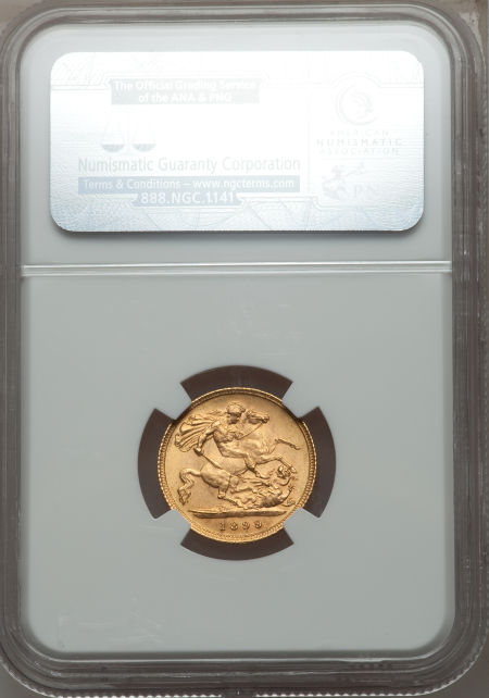 「アンティークコイン金貨専門のゴールドコイン」で取り扱う商品「【動画あり】イギリス 1/2ソブリン金貨 Great Britain: Victoria gold Half Sovereign 1899, S-3878, KM784, Old or Veiled Head, MS63 NGC」の紹介・購入ページ