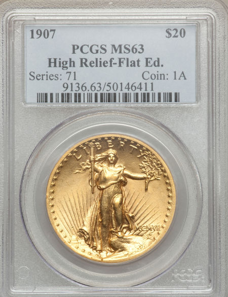 「アンティークコイン金貨専門のゴールドコイン」で取り扱う商品「【動画あり】20ドル金貨セントゴーデンズ ハイリリーフ1907 $20 High Relief, Flat Rim MS63 PCGS」の紹介・購入ページ