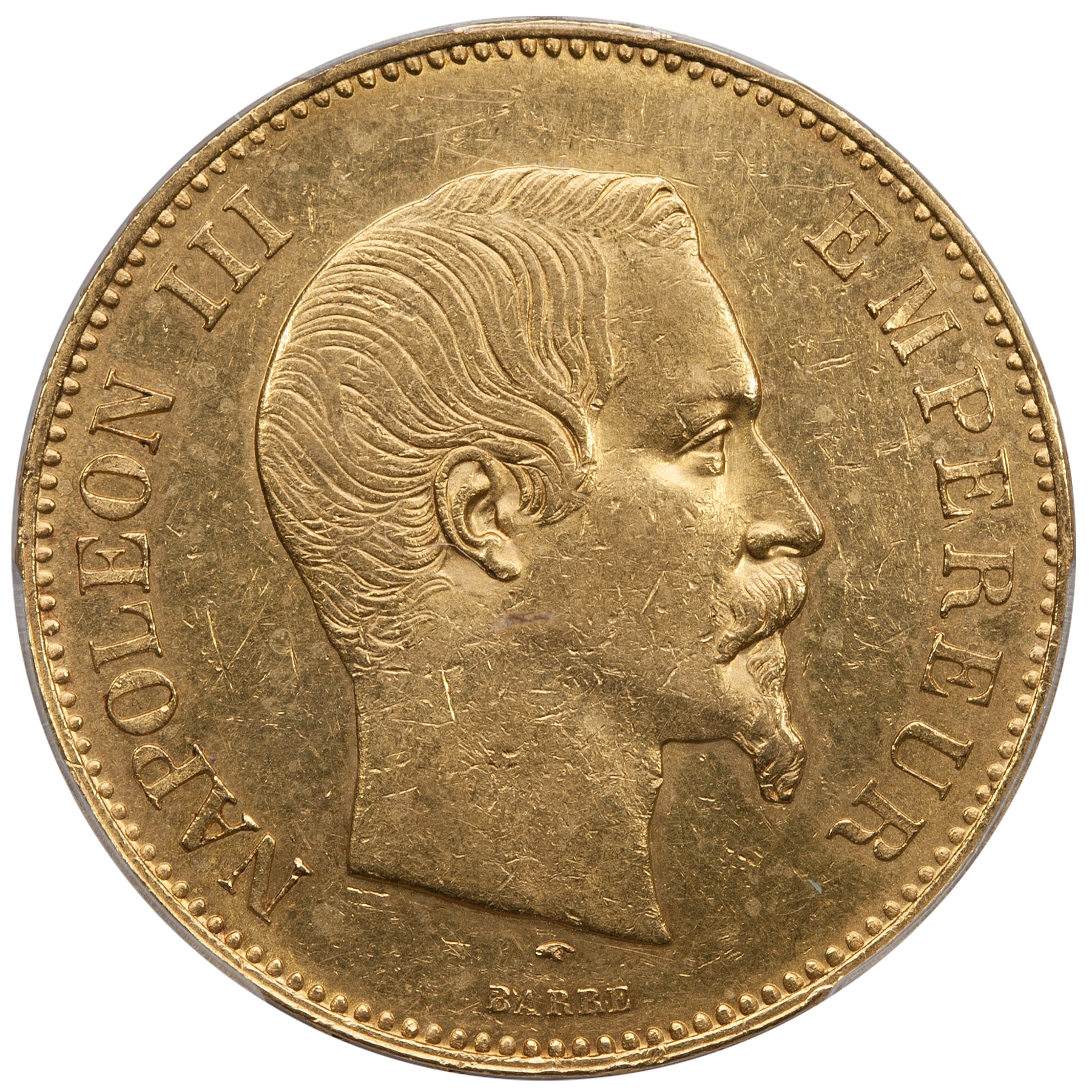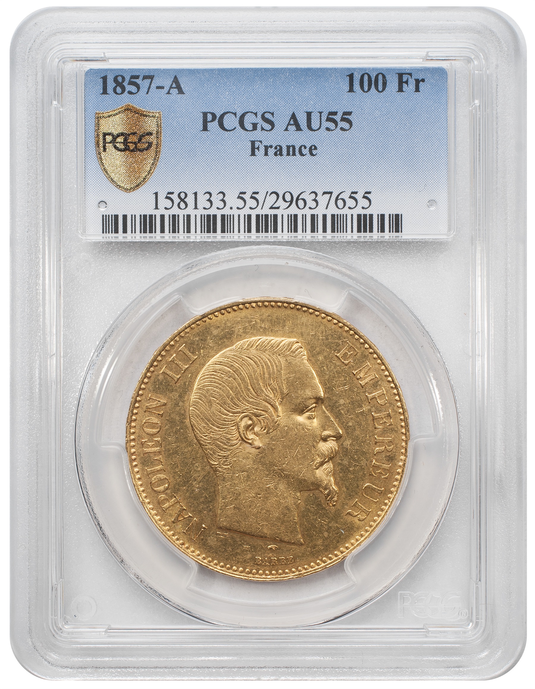 「アンティークコイン金貨専門のゴールドコイン」で取り扱う商品「【動画あり】アンティークコイン_フランス金貨_エンペラー_ナポレオンⅢ_1857-A年100フラン PCGS AU55」の紹介・購入ページ