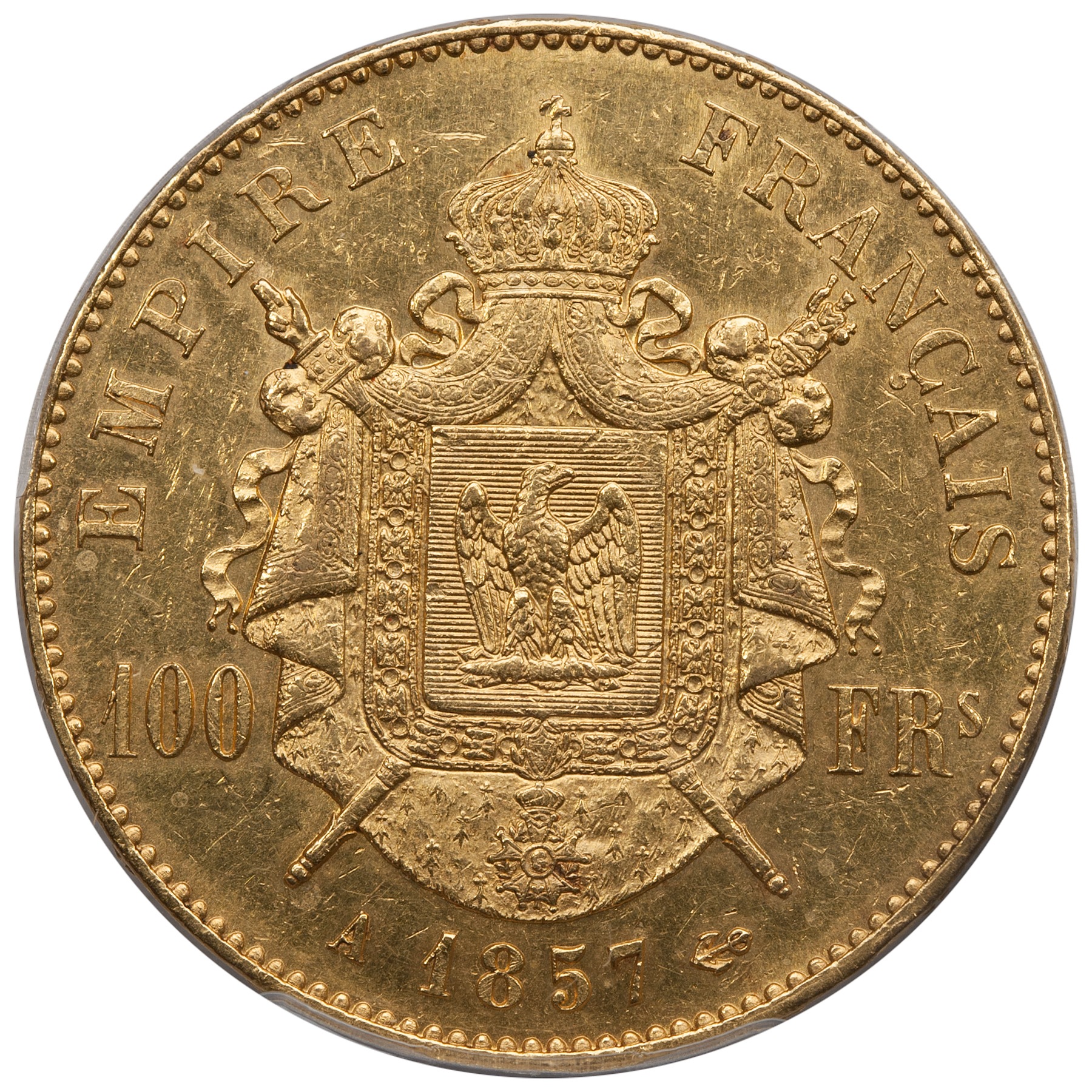 エンペラー ナポレオンⅢ 1857-A 100フラン PCGS AU55