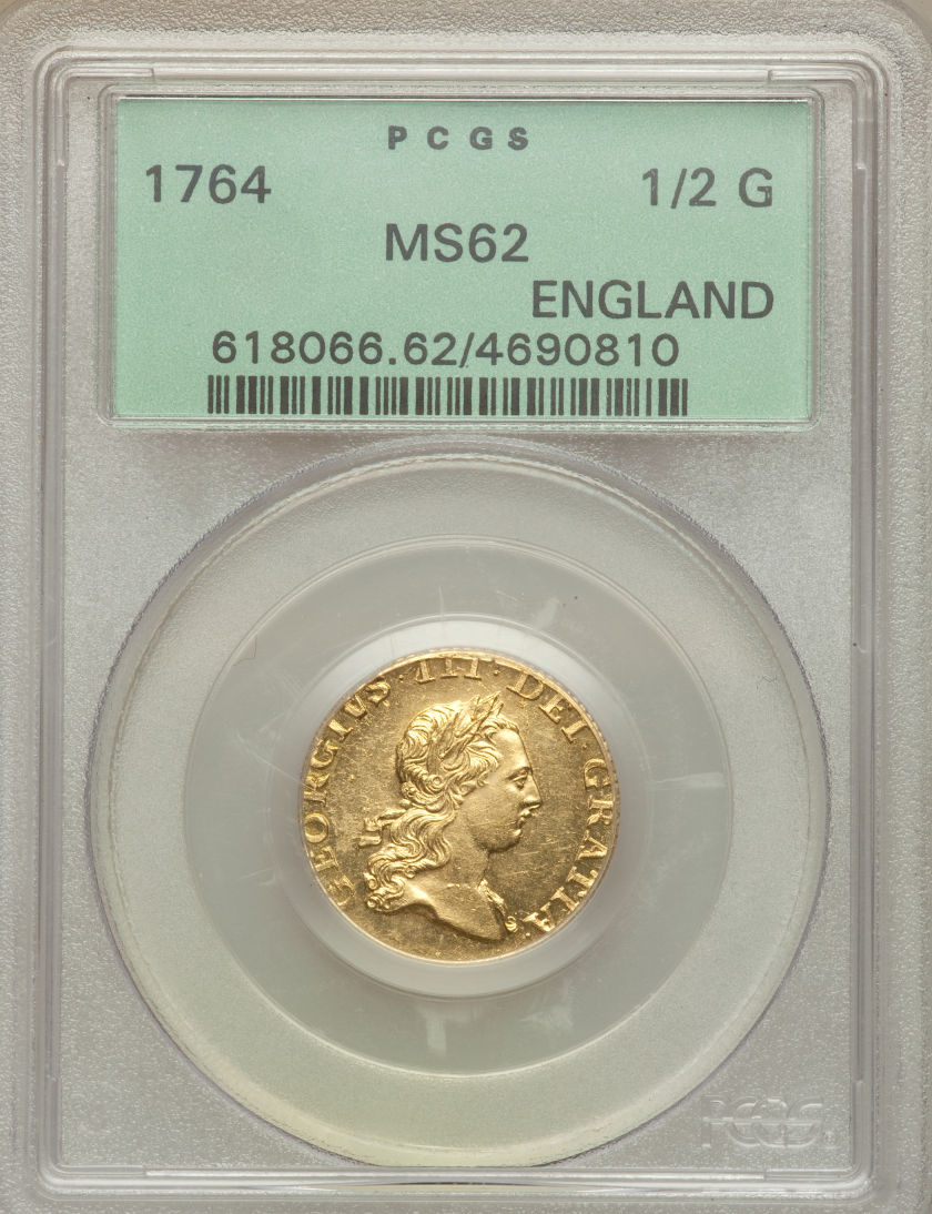 George III gold 1/2 Guinea 1764 MS62 PCGS