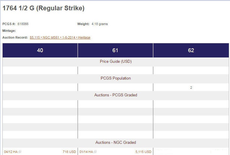 NGC社のMS62で5,115ドルのオークションレコードがあり