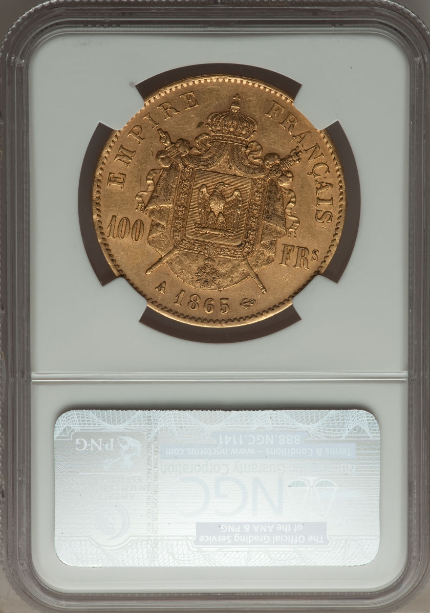 Napoleon III gold 100 Francs 1865-A AU55 NGC