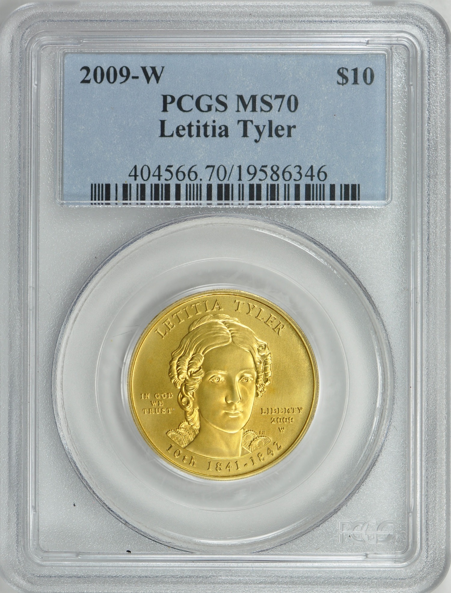 「アンティークコイン金貨専門のゴールドコイン」で取り扱う商品「最終値下げ【動画あり】2009-W 10ドル金貨 レティシア タイラー$10 PCGS MS70」の紹介・購入ページ