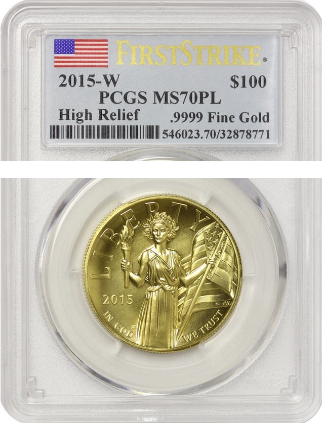 2015アメリカンリバティ ハイリリーフ 100ドル金貨PCGS-MS70 プルーフライク ファーストストライク