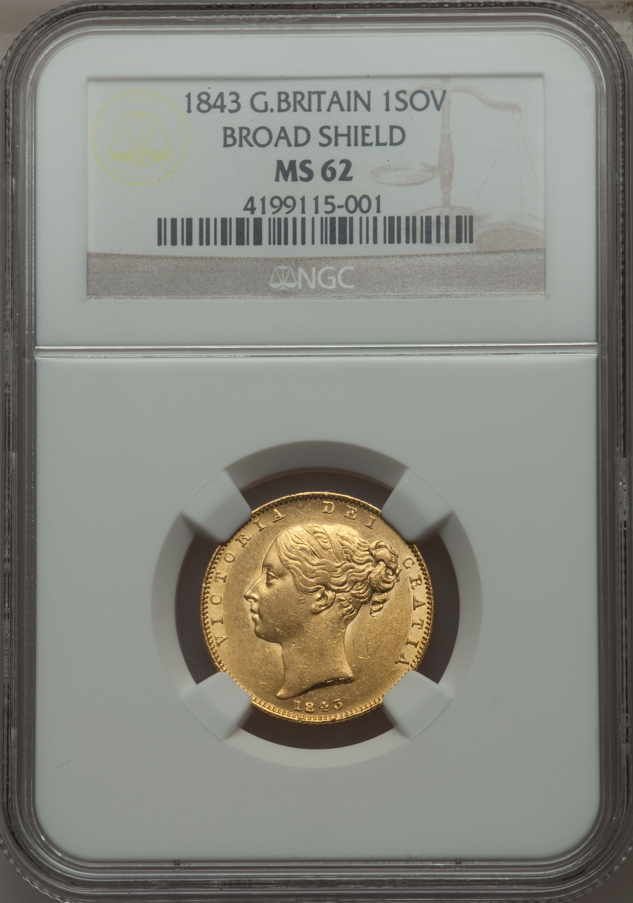 「アンティークコイン金貨専門のゴールドコイン」で取り扱う商品「【動画あり】アンティークコイン グレートブリテン金貨 Victoria gold Sovereign 1843 MS62 NGC Royal mint, KM736.1, S-3852. Board Shield variety」の紹介・購入ページ