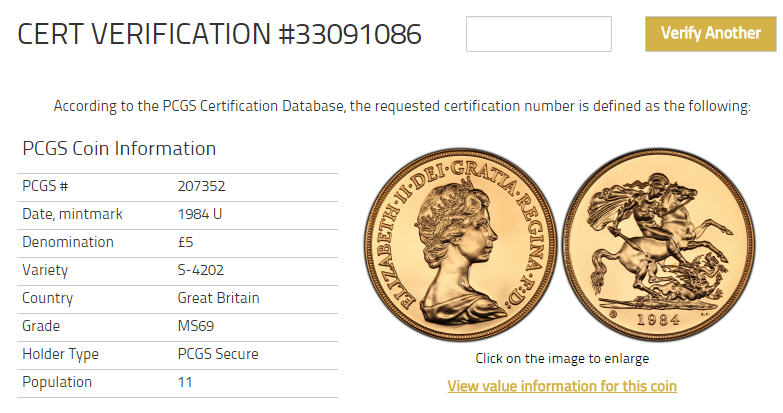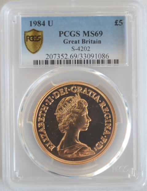 「アンティークコイン金貨専門のゴールドコイン」で取り扱う商品「【動画あり】1984U エリザベス5ポンド金貨 MS69 PCGS」の紹介・購入ページ