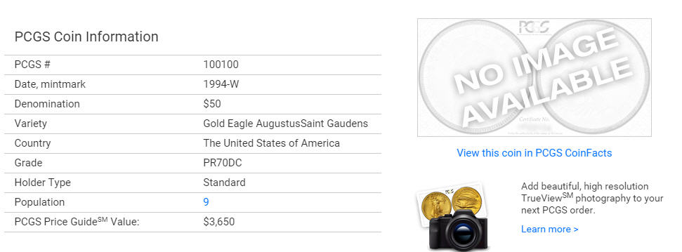 「アンティークコイン金貨専門のゴールドコイン」で取り扱う商品「【動画あり】50ドル金貨 ゴールドイーグル 1994W GOLD EAGLE $50 PCGS PR70DCAM セントゴーデンズサイン入り完全未使用 」の紹介・購入ページ