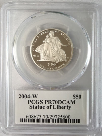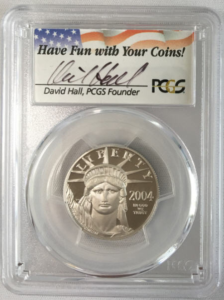 「アンティークコイン金貨専門のゴールドコイン」で取り扱う商品「【動画あり】プラチナイーグル 50ドル 1/2オンス2004-W $50 Platinum Eagle PR70 DCAM PCGS DAVID HALLサイン入り」の紹介・購入ページ
