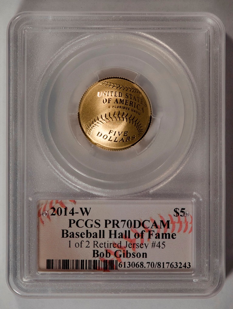 【世界で2枚】2014メジャーリーグベースボール記念コイン 引退背番号45番 5ドル金貨ボブギブソン PCGS-PR70-DCAM