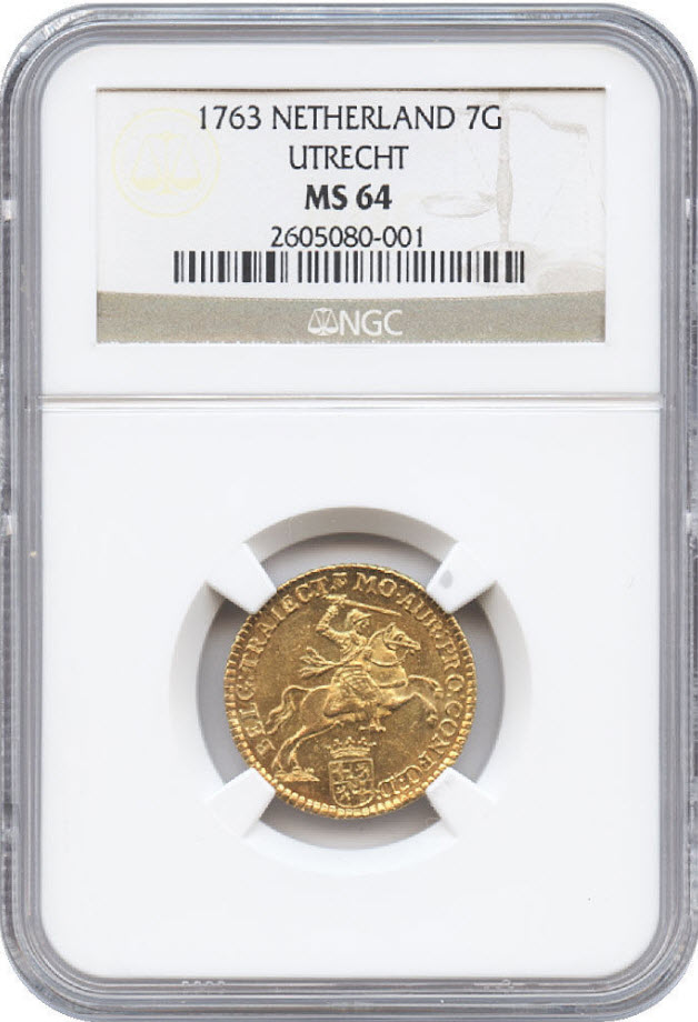 【トップグレード残存2枚】アンティークコイン オランダ ユトレヒト7ギルダー1763 MS64 NGC