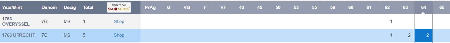 「アンティークコイン金貨専門のゴールドコイン」で取り扱う商品「【トップグレード残存2枚】アンティークコイン オランダ ユトレヒト7ギルダー1763 MS64 NGC 」の紹介・購入ページ
