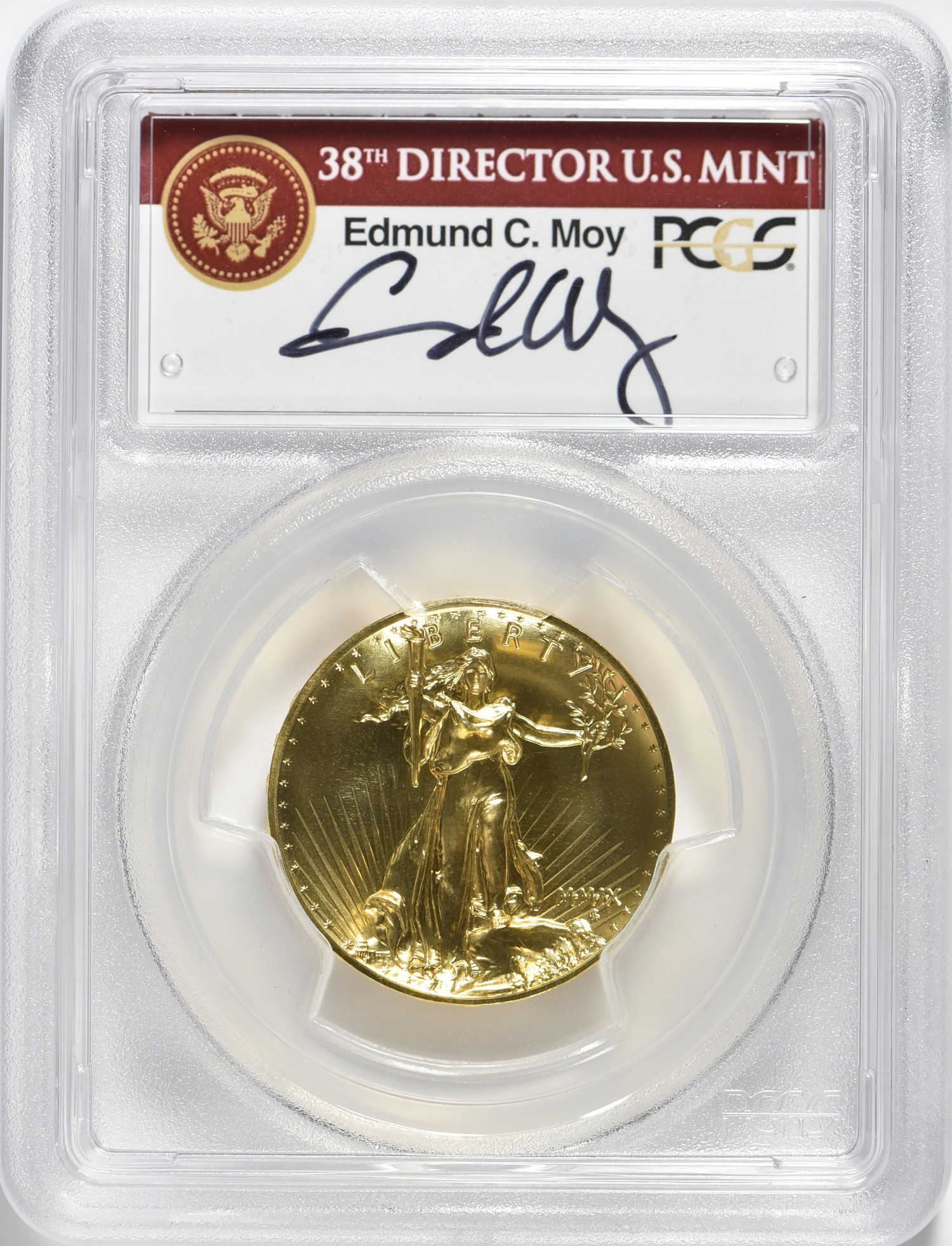 【動画あり】2009ウルトラハイリリーフ金貨 PCGS-MS70 PL(プルーフライク)未使用 Edmund C. Moyサイン入りBurgundy