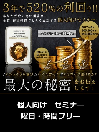 大変好評な、資産を確実に守りながら、値上がり益を狙う、 知られざるアンティークコイン投資術セミナーですが、