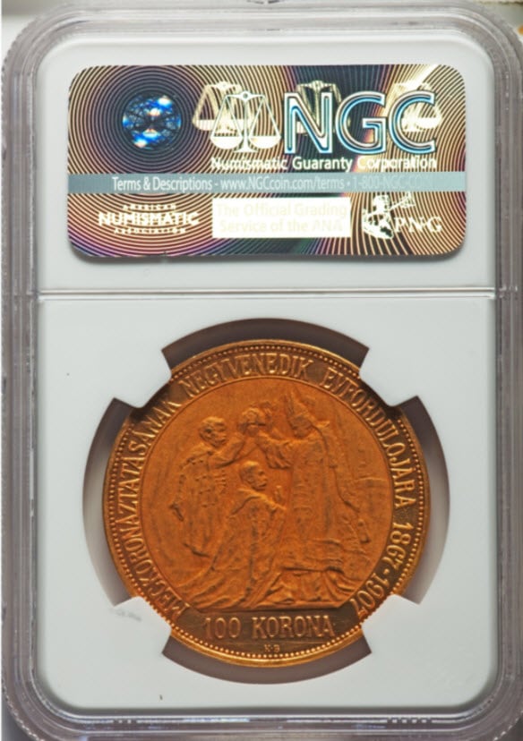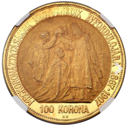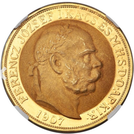 「アンティークコイン金貨専門のゴールドコイン」で取り扱う商品「【動画あり】アンティークコイン ハンガリー 1907年 皇帝戴冠式記念100コロナ金貨 PF64 NGC」の紹介・購入ページ