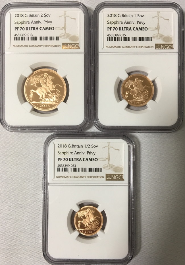 特別なモデルです。2ソブリンを含む、3枚セットです。 プルーフ仕上げです。