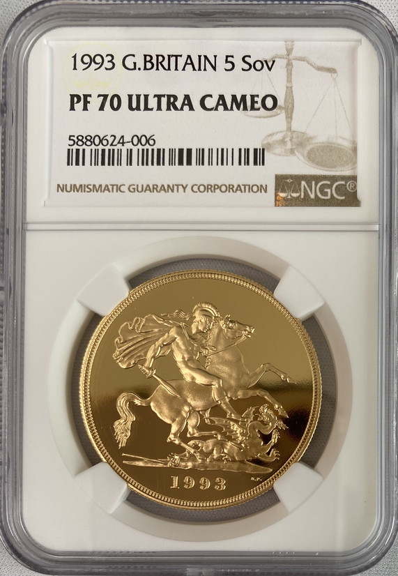 「アンティークコイン金貨専門のゴールドコイン」で取り扱う商品「【動画あり4枚セット】グレートブリテン1993年エリザベスII世5ソブリン・2ソブリン・1ソブリン・0.5ソブリンプルーフ金貨NGC-PF70UCAMオリジナル箱付き」の紹介・購入ページ