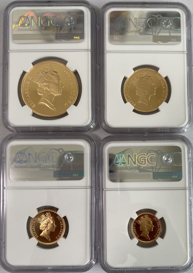 【動画あり4枚セット】グレートブリテン1993年エリザベスII世5ソブリン・2ソブリン・1ソブリン・0.5ソブリンプルーフ金貨NGC-PF70UCAMオリジナル箱付き