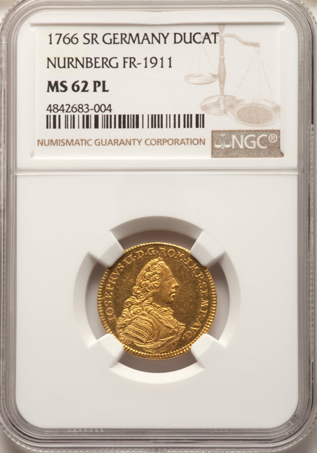 ドイツ ニュルンベルク フリーシティゴールドデュカット 1766-SR MS62 プルーフライク NGC