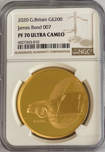 「アンティークコイン金貨専門のゴールドコイン」で取り扱う商品「【動画あり】グレートブリテン2020年エリザベスII世2オンス200ポンドプルーフ純金金貨ジェームズボンド007NGC-PF70UCAM」の紹介・購入ページ