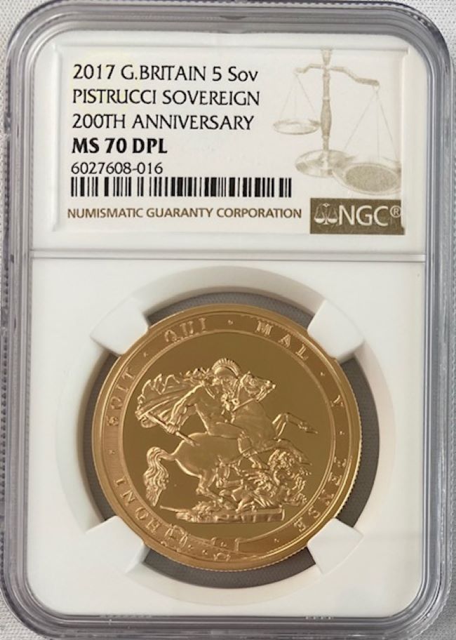「アンティークコイン金貨専門のゴールドコイン」で取り扱う商品「【動画あり】グレートブリテン 2017年 エリザベスII世 200周年記念 5ポンド金貨 NGC-MS70 DPL 6027608-016」の紹介・購入ページ