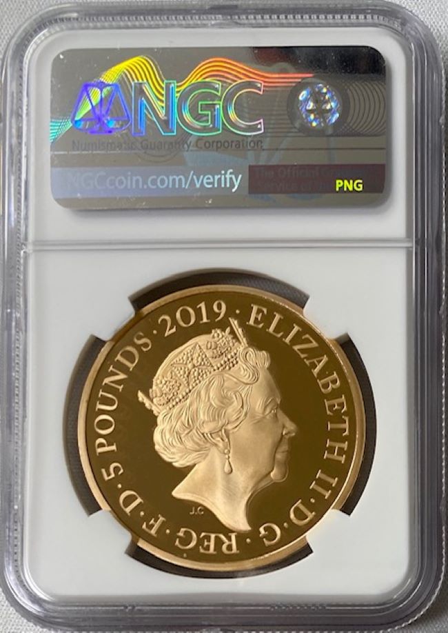 「アンティークコイン金貨専門のゴールドコイン」で取り扱う商品「【動画あり】グレートブリテン 2019年 エリザベスII世 ザタワーオブロンドン レイヴンの伝説 5ポンドプルーフ金貨 NGC-PF70 UCAM」の紹介・購入ページ