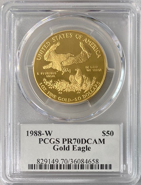 「アンティークコイン金貨専門のゴールドコイン」で取り扱う商品「【動画あり】アメリカ50ドル金貨 ゴールドイーグル 1988-W年 $50PCGS PR70DCAMクリーブランドサイン入り」の紹介・購入ページ