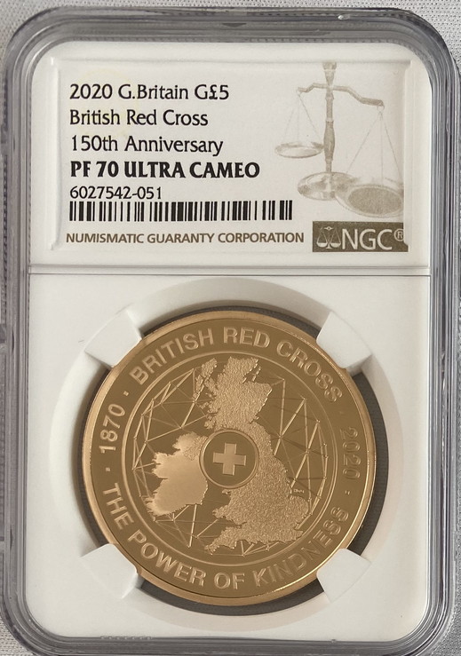 「アンティークコイン金貨専門のゴールドコイン」で取り扱う商品「【動画あり】グレートブリテン2020年150周年ブリティッシュ・レッドクロス1オンス5ポンドプルーフ金貨NGC-PF70UCAM」の紹介・購入ページ