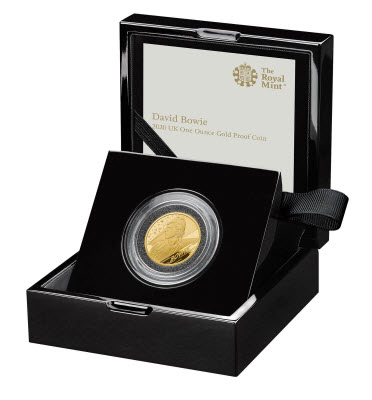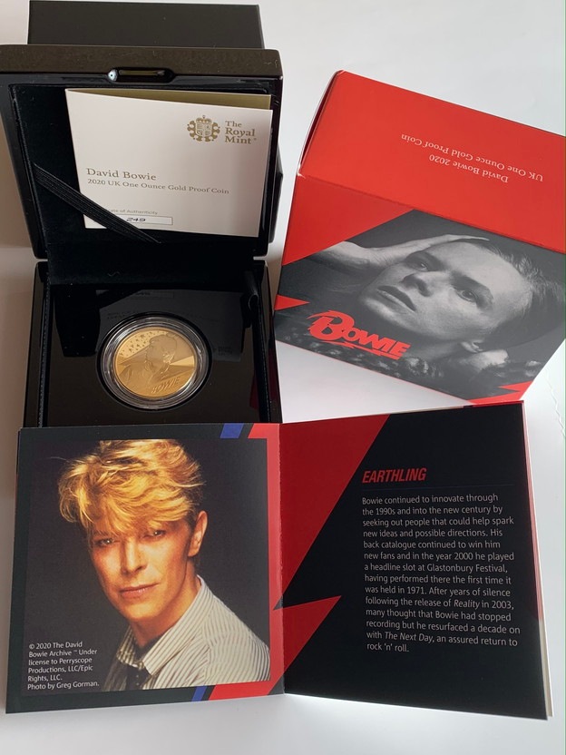 「アンティークコイン金貨専門のゴールドコイン」で取り扱う商品「グレートブリテン 2020年 デヴィッド・ボウイ100ポンドプルーフ純金金貨 オリジナル箱付き」の紹介・購入ページ