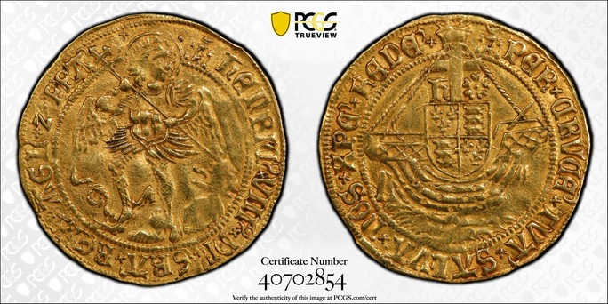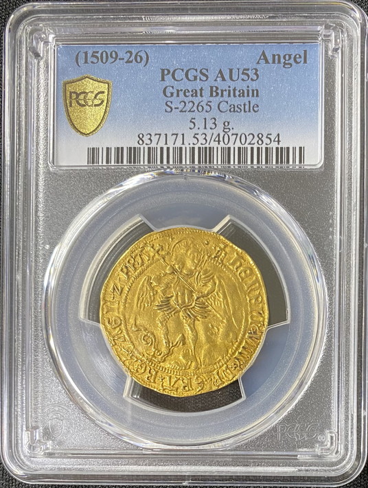 「アンティークコイン金貨専門のゴールドコイン」で取り扱う商品「グレートブリテン ヘンリー8世 (1509-1526) ゴールドエンジェル ND (1544-1547)PCGS-AU53」の紹介・購入ページ