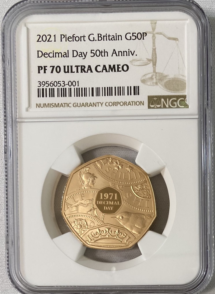 「アンティークコイン金貨専門のゴールドコイン」で取り扱う商品「グレートブリテン2021年50ペンスプルーフピエフォー金貨NGC-PF70UCAMオリジナル箱付き3956053-001」の紹介・購入ページ