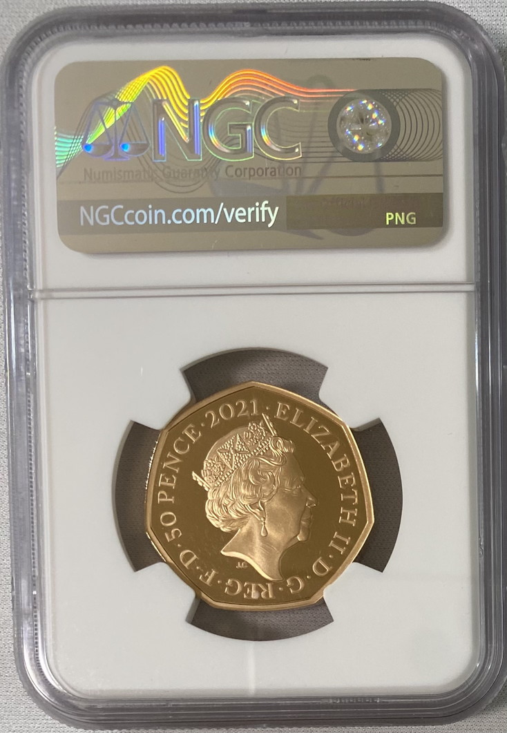 グレートブリテン2021年50ペンスプルーフピエフォー金貨NGC-PF70UCAMオリジナル箱付き3956053-001