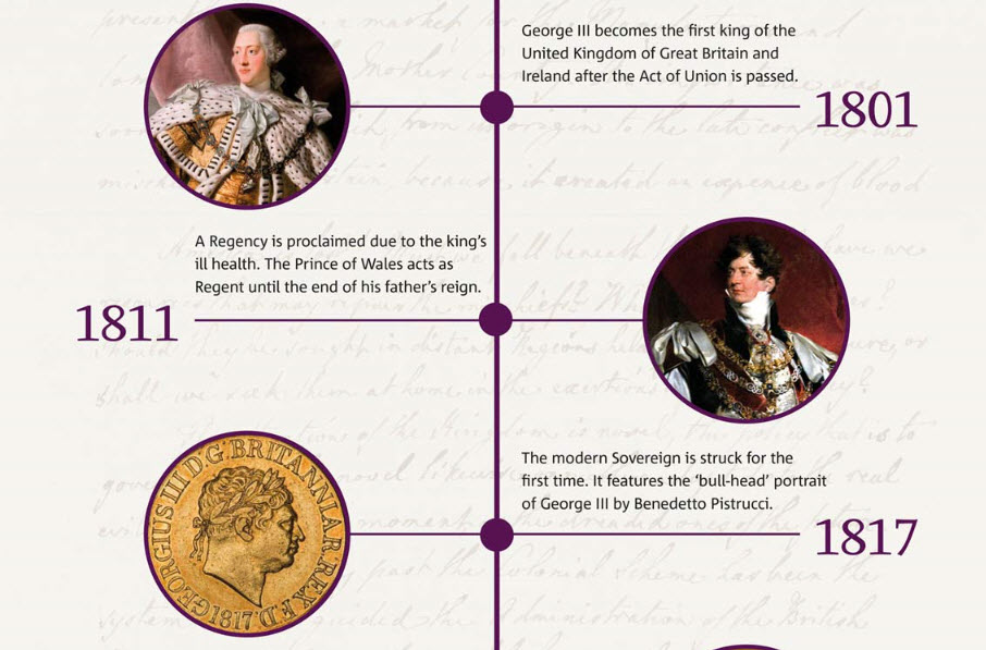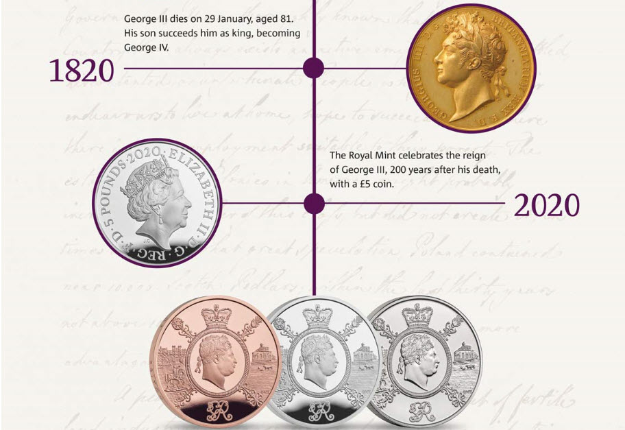 ジョージ3世が初めてイギリスの現代の貨幣で祝われた最新の記念金貨です。