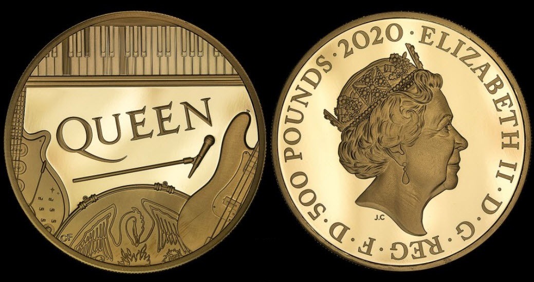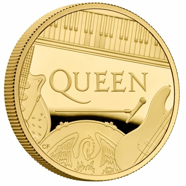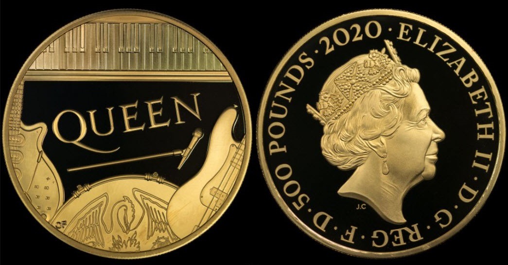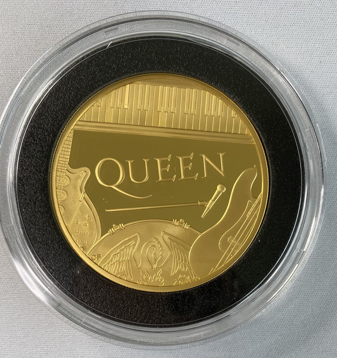 英国のミュージックバンド クイーンが初めてイギリスの現代の貨幣で祝われた最新の記念金貨です。