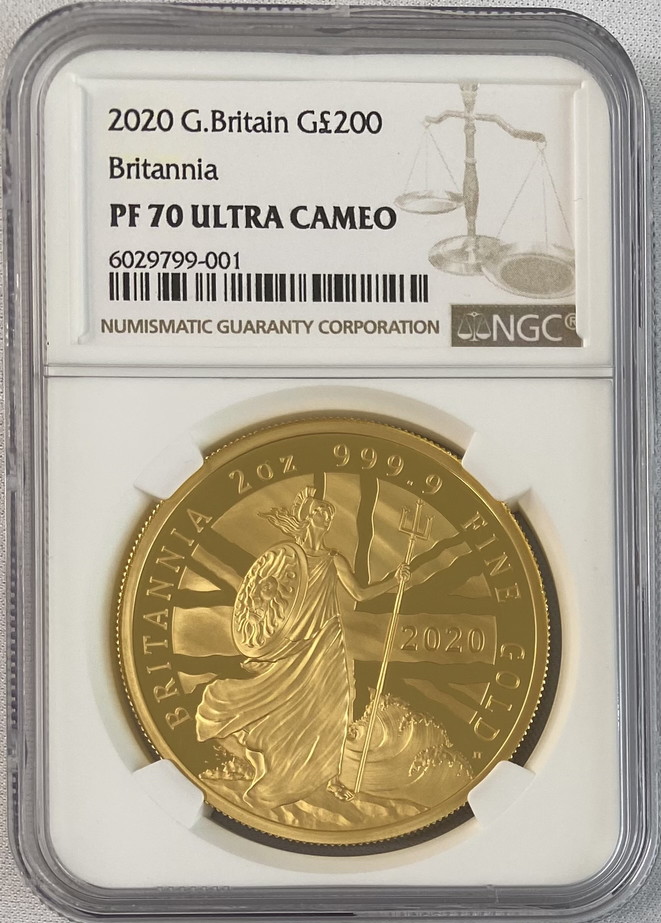 「アンティークコイン金貨専門のゴールドコイン」で取り扱う商品「【動画あり】グレートブリテン 2020年 エリザベス2世 200ポンドプルーフ-ブリタニア金貨 NGC-PF70UCAM個別番号6029799-001」の紹介・購入ページ