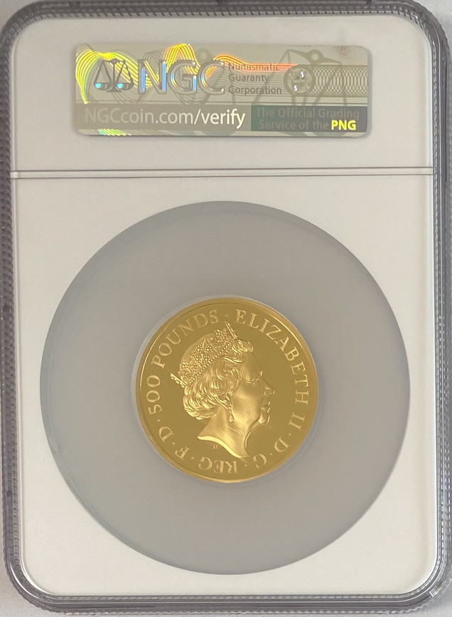 「アンティークコイン金貨専門のゴールドコイン」で取り扱う商品「【動画あり】グレートブリテン 2021年 エリザベス2世 純金5オンス 500ポンドプルーフ・ライオンとブリタニア金貨 NGC-PF70UCAM ファースリリース箱付き」の紹介・購入ページ