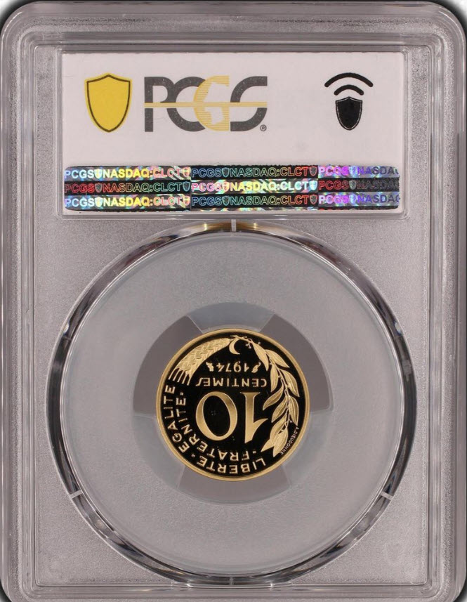 アンティークコイン フランス 1973年 10サンチームピエフォー金貨 PCGS-SP69