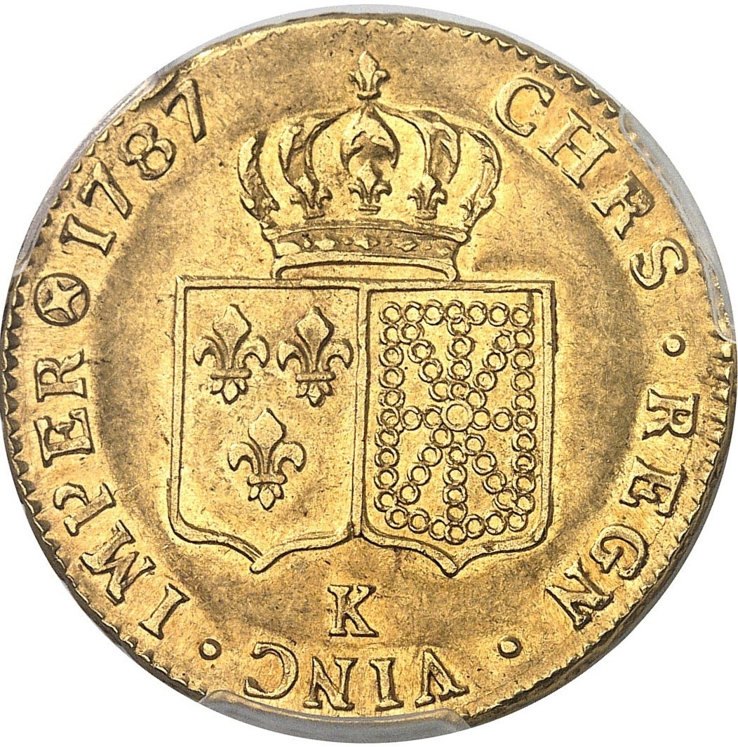 「アンティークコイン金貨専門のゴールドコイン」で取り扱う商品「【レア度2-R2】フランス 1787-K年 ルイ16世 2ルイドール金貨 PCGS-AU58」の紹介・購入ページ