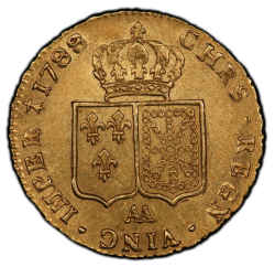 「アンティークコイン金貨専門のゴールドコイン」で取り扱う商品「【レア度1-R1】フランス 1788-AA年 ルイ16世 2ルイドール金貨 PCGS-AU58」の紹介・購入ページ