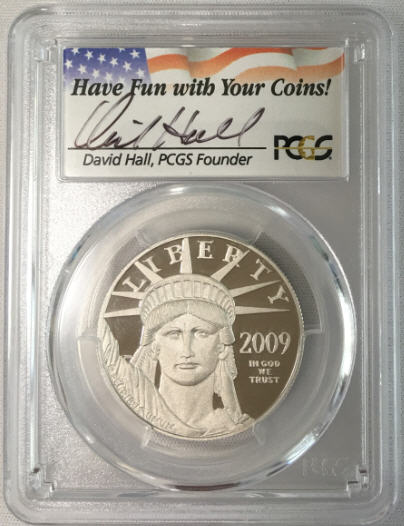 「アンティークコイン金貨専門のゴールドコイン」で取り扱う商品「【動画あり】プラチナイーグル 100ドル 1オンス2009-W $100 Platinum Eagle PR70 DCAM PCGSファーストストライク DAVID HALLサイン入り」の紹介・購入ページ