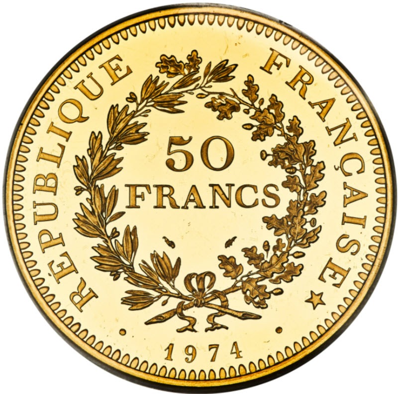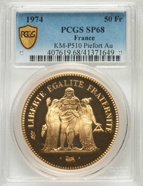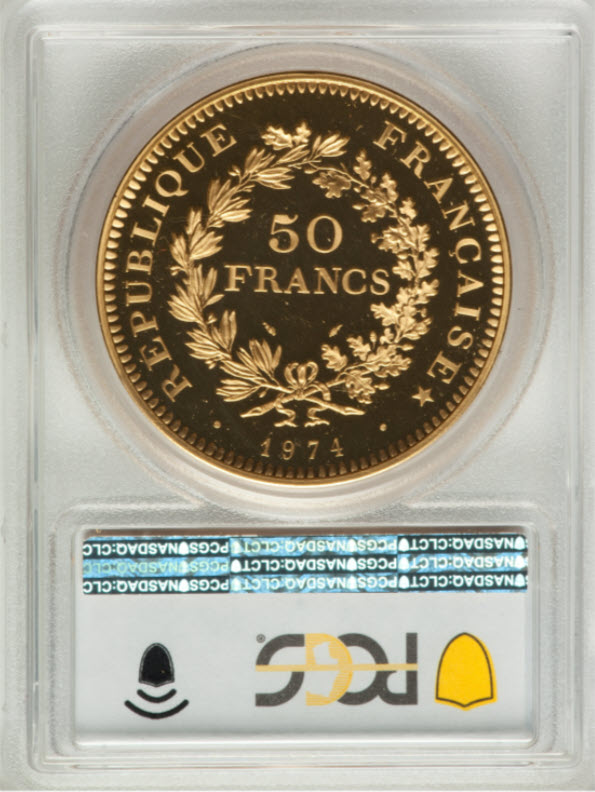 「アンティークコイン金貨専門のゴールドコイン」で取り扱う商品「フランス 1974年 リパブリックプルーフ 50フラン金貨 PCGS-SP68」の紹介・購入ページ
