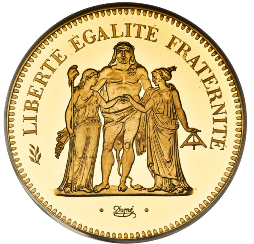 この金貨には、50フランと10フランのものが分かれて存在します。