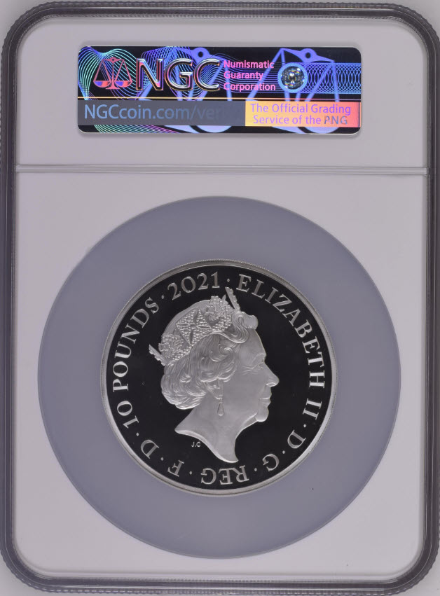 グレートブリテン 2021年 ニューゴシッククラウン ポートレイト 10オンス 10ポンド銀貨 NGC-PF70UCAM オリジナル箱付き
