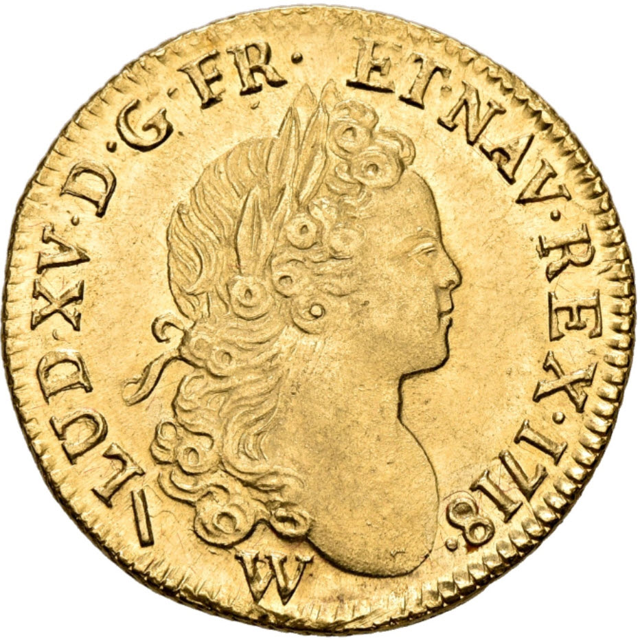 「アンティークコイン金貨専門のゴールドコイン」で取り扱う商品「【動画あり】フランス 1718-W年 ルイ15世 ルイドール金貨 NGC-MS63+」の紹介・購入ページ