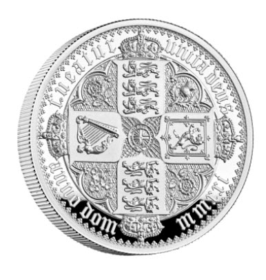 表の図案は王冠を戴く若きヴィクトリア女王の胸像。 銘はVictoria dei gratia britanniarum regina fidei defensor なお、Britanniarum以下はbritanniar.reg:f:d.と略されている。 また裏面は、十字型に配置したイングランド(3頭の獅子)、スコットランド(獅子)、アイルランド(ハープ)の盾と各地域の象徴であるバラ、アザミ、クローバーのモチーフが描かれている。 周囲の銘字はtueatur unita deus anno dom mdcccxlvii コインをデザインしたのは、当時の造幣局彫刻部長であった このコインはイギリスの近代コインでは初めて銘字にブラックレターを採用したもので、同様のコインには1851年から発行されたゴチック・フローリンがある。 wikipediaより転載 |