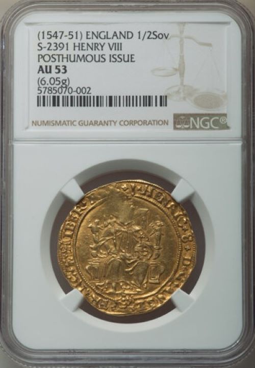 グレートブリテン エドワード6世 ヘンリー8世名義 1547-51年 1/2ソブリン金貨 NGC-AU53