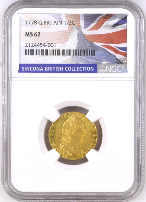 【レア度3-R3】グレートブリテン 1778年 ジョージ3世 1/2ギニー金貨 NGC-MS62