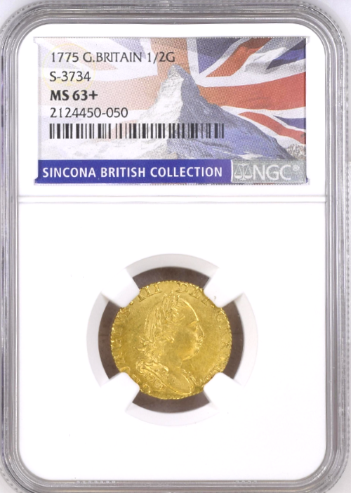 【レア度1-R1】グレートブリテン 1775年 ジョージ3世 1/2ギニー金貨 NGC-MS63+