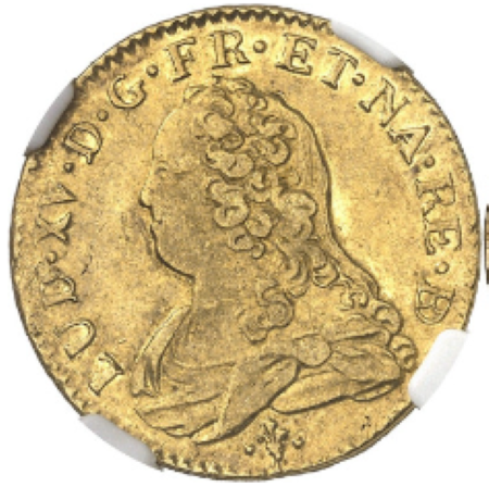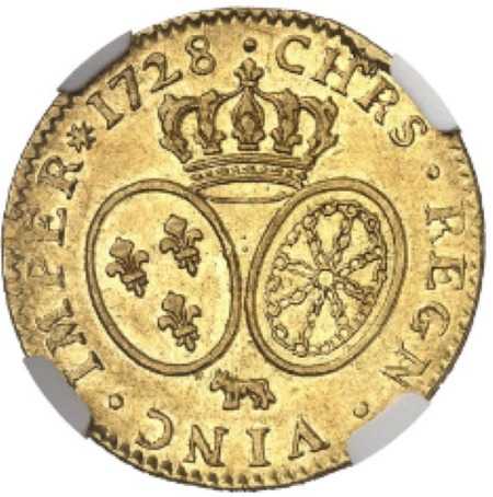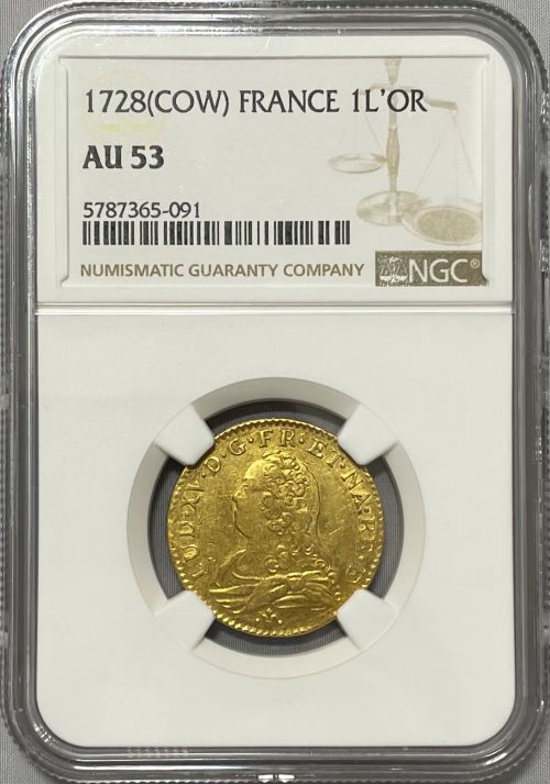 「アンティークコイン金貨専門のゴールドコイン」で取り扱う商品「【レア度2-R2】フランス 1728-COW年 ルイ15世 ルイドール金貨 NGC-AU53」の紹介・購入ページ