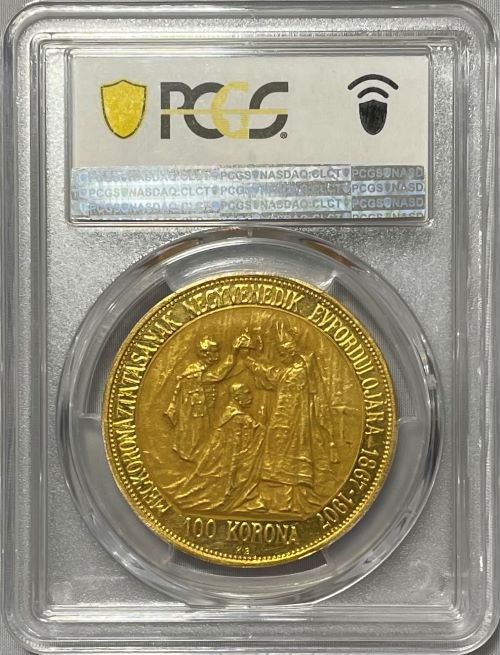 ハンガリー 1907-KB年 フランツ・ヨーゼフ1世 100コロナ金貨 コロネーション・アニヴァーサリー PCGS-MS62